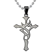 Strong, Simple and Masculine with a touch of exotic; this unique Cross is crafted from 316L Stainless Steel and features a cut-out Tribal design that will appeal to your eclectic style. The Black Enamel Finish adds a gothic twist to the distinctive design. Surgical Steel emulates the richness of precious metals and ensures a Promise of Forever, defines Strength, will never rust, corrode or discolor nor lose its Timeless charm to tarnish. You can feel safe when you wear this Surgical Steel pendant; it is completely Bio-compatible. This elegant pendant has a gleaming, strong Matte-Finish bail that fits comfortably on an 18 inch Stainless Steel Ball Chain with a 4 inch extender. Dimensions: Length: 11/2 inches x Width: 1 inch. This includes a Money Back Guarantee, Free Gift Box and Free Shipping.