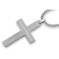 Keep strictly to the straight and narrow.Easy to do with your show of devotion in this simple cross made of jewelry grade stainless steel accented with thin line detailing and a genuine diamond.Complete with a 24" Stainless Steel Curb Chain.
