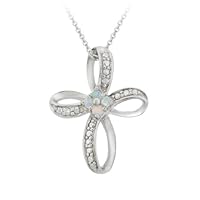 Click Here to see more reviews about: Sterling Silver Diamond-Accent Created-Opal Ribbon Cross Pendant with Rolo Chain, 18"