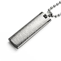 A solid stainless steel large pendant etched with the Lord's Prayer in English.The pendant measures about 1.45 inches (37mm) high and 0.47 inches (12mm) wide.This pendant comes with a stainless steel bead chain available in 16, 18, 20, 22 or 24 inches length.We use high quality stainless steel which has high resistance to rust, corrosion and tarnishing and requires minimal maintenance in order to keep jewelry looking like new.
