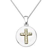 (More customer reviews)Of all my cross pendants, this is my favorite! It is perfect for a short chain, and although small, commands lots of attention. The diamonds in gold are great with the silver disk, making it mix with silver and gold. A wonderful statement of faith. Just the right size, love it!!!