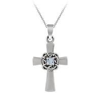 Click Here to see more reviews about: Sterling Silver Blue Topaz Celtic Cross Pendant, 18"