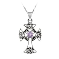 Click Here to see more reviews about: Sterling Silver Celtic Cross with Amethyst Center Pendant , 18"