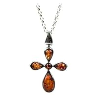Click Here to see more reviews about: Sterling Silver Multi-Color Amber Cross Pendant, 18"