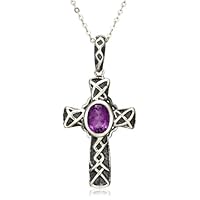 Click Here to see more reviews about: Sterling Silver Celtic Amethyst Cross Pendant, 18.5"