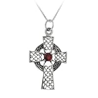 Click Here to see more reviews about: Sterling Silver Celtic Cross with Garnet Pendant , 18"