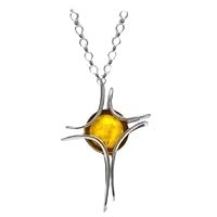 Click Here to see more reviews about: Sterling Silver Honey Amber Small Modern Cross Pendant, 18"