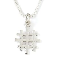Handcrafted from sterling silver, this pendant features the distinctive Jerusalem cross--also known as the crusader's cross--which depicts a symmetrical cross flanked by a smaller cross in each of its four quadrants. With its rough-hewn appearance and almost abstract design, this uncommon Christian symbol will be sure to start conversations. The 1/2-inch pendant comes on an 18-inch box chain and is made in the United States.