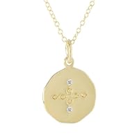 Offer a gift that gleams with this unique pendant, made from gold-dipped sterling silver with a high polish finish. The irregular-shaped circle tag is stamped with a decorative cross pattern and detailed with flush-set cubic zirconia accent stones. The pendant comes complete with an 18-inch chain.