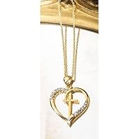 An elegant necklace by Signature Sterling is a true token of your faith. This necklace features an 18kt gold over sterling silver 18" chainwith a diamond accented pendant of a cross that is wrapped in a heart. Enjoy the brilliance this diamond accented necklace has to offer!