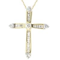 Click Here to see more reviews about: 0.50cttw Natural White (SI-Clarity GH-Color) Diamond Cross Pendant in 14k Yellow Gold.Include 14k 18 inches Yellow gold chain.