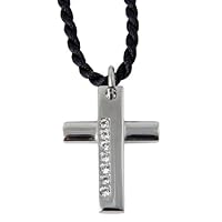 Click Here to see more reviews about: Stainless Steel Cross Pendant - Cubic Zirconia with Black Cord Necklace