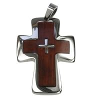 Click Here to see more reviews about: 316L Stainless Steel Pendant Stainless steel cross pendant with wood Length: 54mm Width: 37mm Thickness: 6mm