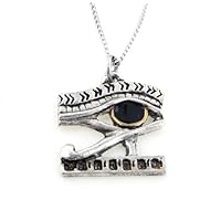 Enchanting English-Made Pewter and Gold Overlay with a BeautifulBlack Enameled Eye make this Eye of Horus Pendant a Delightful Gift for Anyone!Pendant is 1" tall x 7/8" wide and comes with a 20" chain in a Beautiful Gift Box!The bottom of the box has information on the meaning of this pendant. The Eye of the Moon which Set stole from Horus is worn to protect against evil, symbolising the Power of Light over Darkness.This Pendant is said to give the wearer Health, Strength, and Protection.