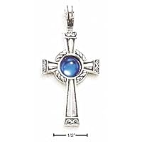 Sterling Silver Russian Cross With Blue Crystal Ball - in Sterling Silver - Ships Without a Chain - JewelryWeb Style: ISP23367NC - FREE gift-ready jewelry box - This Item Does Not Ship With a Chain